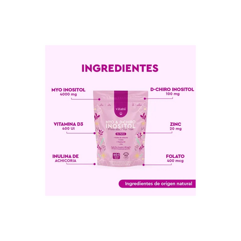 Vitatú | Myo Inositol & D-Chiro Inositol mezcla ideal 40:1 con Folato + Vitamina D3 + Zinc, Suplemento Alimenticio en polvo para Mujeres (450 g c/u), 90 días de duración