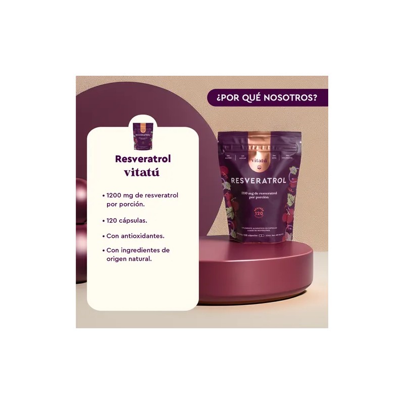 Vitatú | Resveratrol, 1200 mg por porción con 120 cápsulas, 100% Puro, Ingredientes de Origen Natural, con Antioxidantes, Suplemento Alimenticio