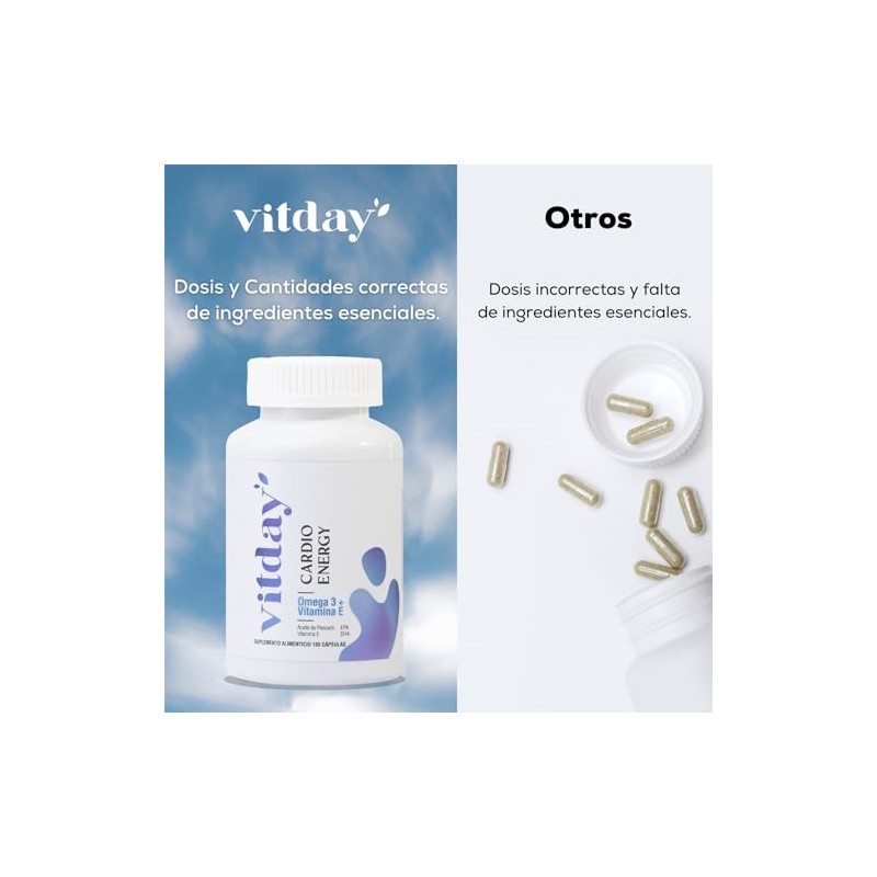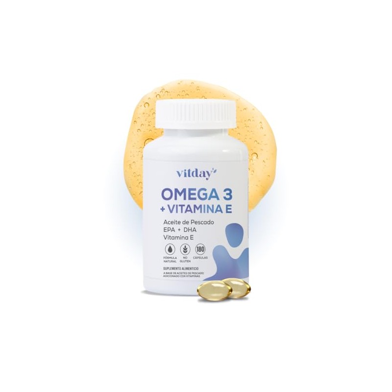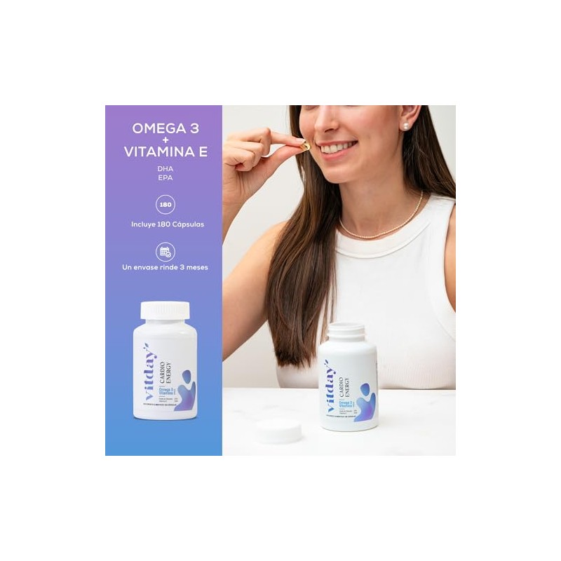 Vitday Aceite de Pescado Omega 3 Con Vitamina E Alto 180 Capsulas 1000mg Contenido de EPA DHA Cardio Energy Suplemento Vitaminas Aceite de Pescado...