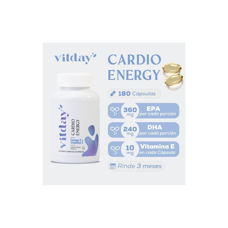Vitday Aceite de Pescado Omega 3 Con Vitamina E Alto 180 Capsulas 1000mg Contenido de EPA DHA Cardio Energy Suplemento Vitaminas Aceite de Pescado...