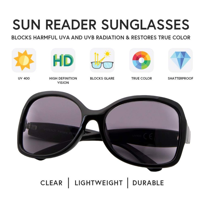 VITENZI Full Reader Sunglasses for Women, Oversized Reading Sunglasses with Built In Full Readers, Ferrara in Black 2.00