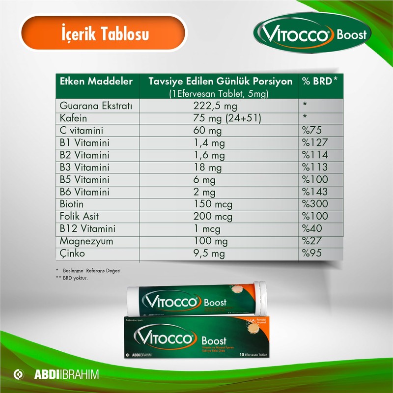 Vitocco Boost Vitamin ve Mineral 15 Efervesan Tablet