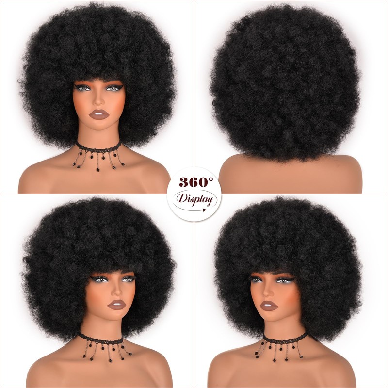 Vitorish Afro Wigs for Black Women 12Inches Glueless Synthetic Short 70's Afro Kinky Curly Wig Natural Black Puffy & Fluffy Bouncy Soft Full Wigs for Daily Cosplay Party(Black)