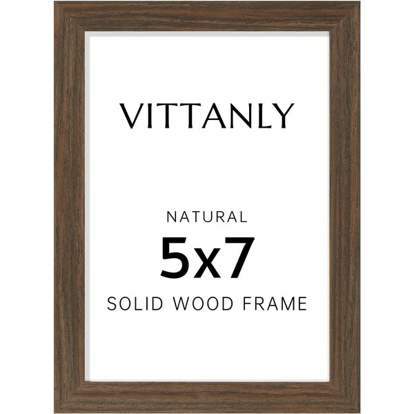 Vittanly 5x7 Picture Frame - Solid Wood Frame with Shatterproof Plexiglass, Includes 4x6 Mat, Wall Hanging or Tabletop Display for Photos, Art, Home & Office Decor (Brown, 1 Pack)