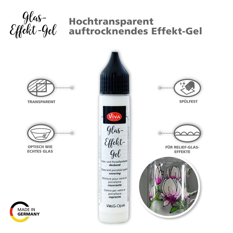 - Highly transparent deco gel to decorate glass and smooth flat surfaces