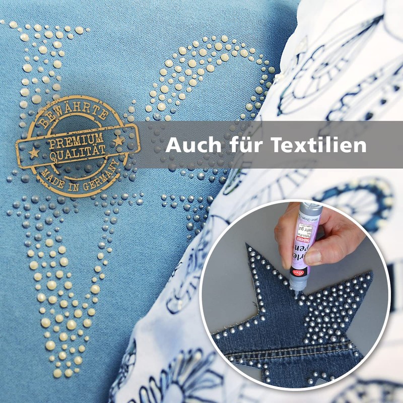 Thanks to the 3D varnish pens from the Perlen Pen range, you can create perfect domed droplets and add relief and fantasy to your clothes!