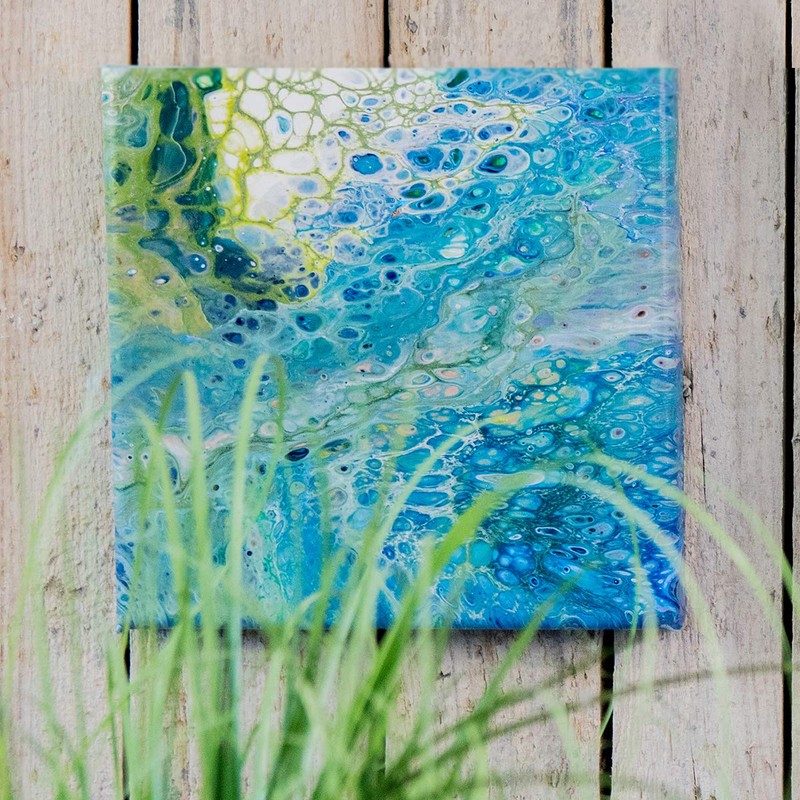 - Easy to use – the desired colours are layered one by one in a cup or poured directly onto the canvas. Tilting creates beautiful, abstract colour patterns and nuances with the typical bubbles.
