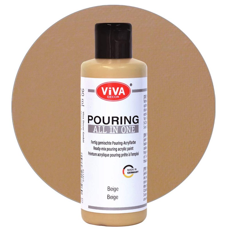 Viva Decor Pouring All in One (Beige, 90 ml) Ready Mixed, Ready-to-Use Liquid Pouring Acrylic Paints, No Mixing Required, for Canvas, Glass, Wood and Stones - Made in Germany