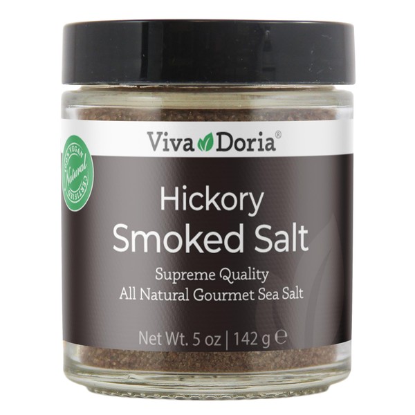 Viva Doria Hickory Smoked Sea Salt (Fine Grain) Hickorywood Salt (5 oz glass jar)