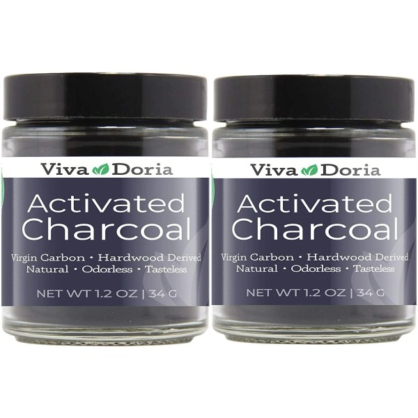 Viva Doria Virgin Activated Charcoal Powder, 1.2 oz Glass Jar (Pack of 2)