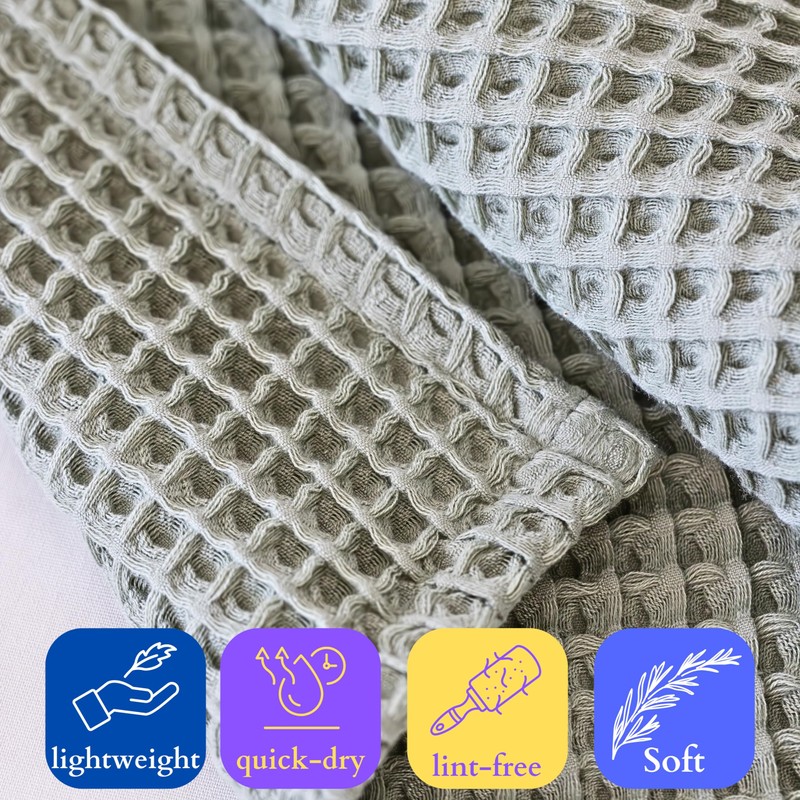 - QUALITY WAFFLE WOVEN: Viva Maison's cotton waffle bath towel sets provide enhanced breathability with the modern waffle weaving technique. This high-quality honeycomb knit weaving technique ensures that the towel is soft, dries quickly, absorbs water effectively, and remains fresh and odorless, especially in humid environments. In addition, the modern waffle weave provides comfort of use, does not leave lint and is skin-friendly.