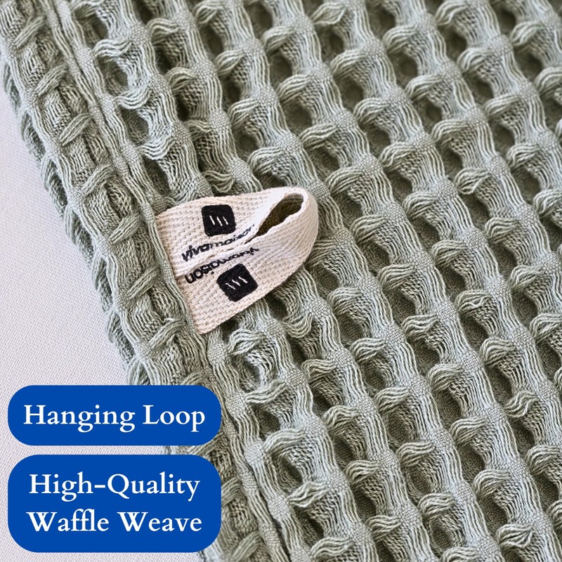 - DETAILS: Viva Maison's waffle bath towels with hanging loops are well-loved for their softness, quick-drying features, high absorbency, and lightweight feel. Crafted from long-staple Turkish cotton, these products offer convenience, comfort, durability, and efficient moisture absorption. Furthermore, their decorative and stylish designs can serve as both ornamental pieces and delightful gifts for your loved ones.