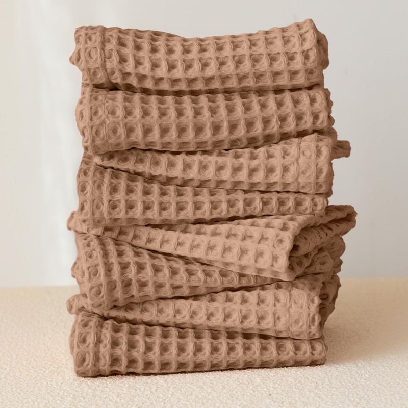 Viva Maison Viva Maison Premium Quality Waffle Washcloths Set of 8 - Turkish Cotton Face Washcloth, Soft Makeup Towel, Shower Cloth, Kitchen Towel (Brown, Set of 8 Washcloths)