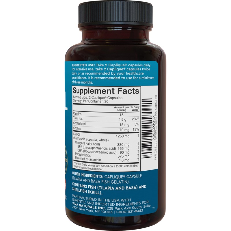 - High Concentration of Omega-3 C Viva Naturals Krill Oil delivers 1,250 mg of omega 3 krill oil per serving, providing 165 mg of EPA and 90 mg of DHA, as well as one of the highest levels of astaxanthin (1600 mcg) available among krill oil dha supplements.