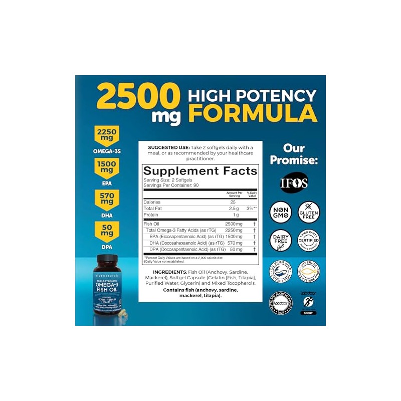 🌟 ⭐ Viva Naturals Viva Labs Omega 3 Fish Oil Supplement, 180 Softgels - The HIGHEST Concentration Omega 3 Capsules, 2,200mg Fish Oil/serving by Viva Labs ⭐ 🌟