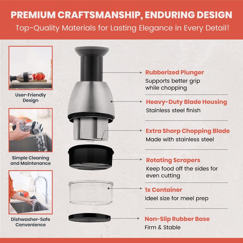 - EASY TO USE AND CLEAN - The compact design of this dicer makes it easy to use and clean. Simply place the vegetable on the blade grid and press down to chop. When you're done, just rinse with water or pop it in the dishwasher for effortless cleaning.
