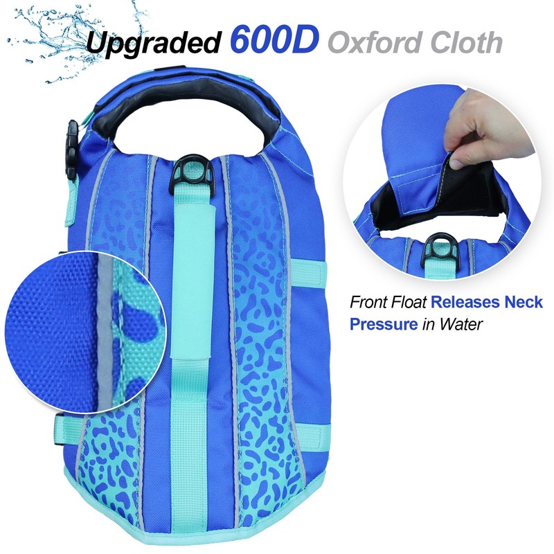 Vivaglory, Dog Life Jacket, Float Coat, Water Sports Swim Aid for Dogs, Pets, With Handle and Reflectors, m, neon green