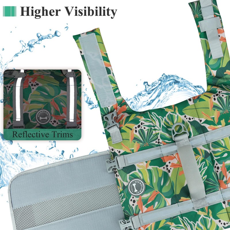 VIVAGLORY Ripstop Dog Life Jacket for Small Medium Large Dogs Boating, Dog Swimming Vest with Enhanced Buoyancy & Visibility, Floral