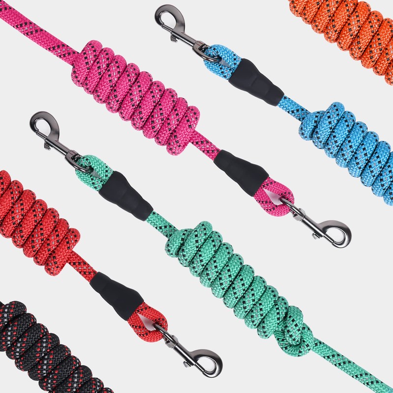 - More robust, much safer: made of high density climbing rope, a 360° rotating metal carabiner without tangling and reinforced seams, this dog lead is more robust than usual. With the strength of this rope leash, you will feel safer during long walks and outdoor activities with your dog. You also have full control of your energetic dog during dog training