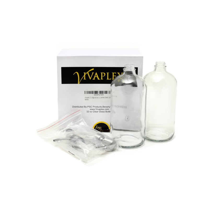 Vivaplex, 2, Large, 32 oz, Empty, Clear Glass Bottles with Stainless Steel, L...