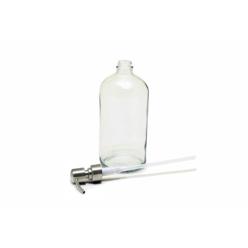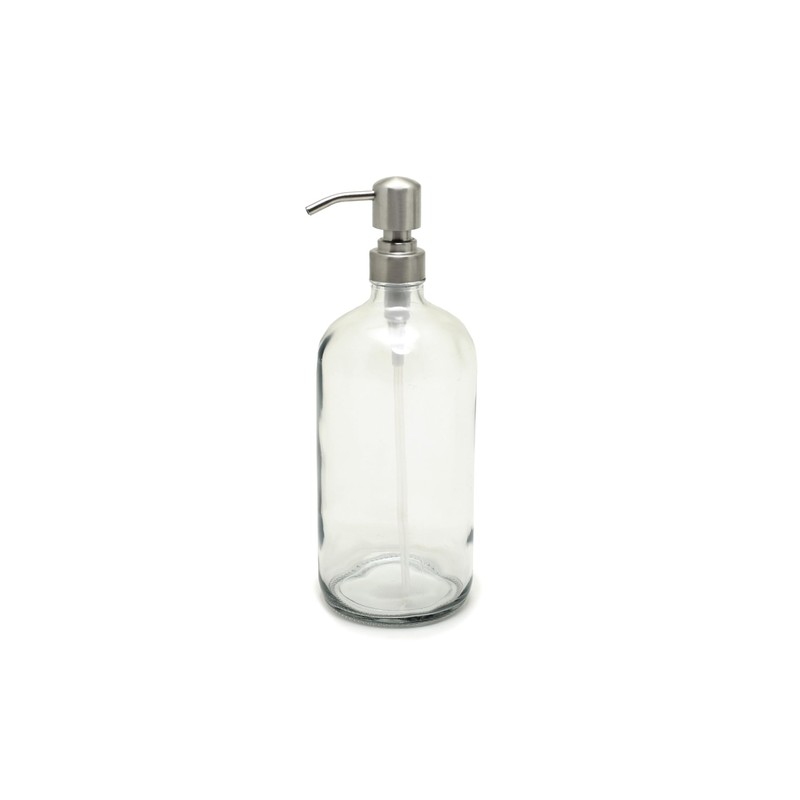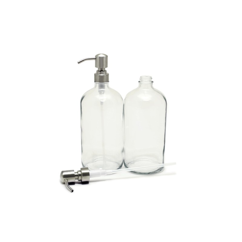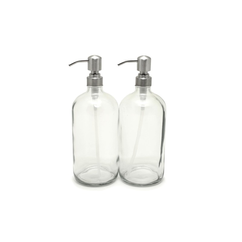 • 2 - 32 oz, Clear glass bottle's, with Stainless Steel, Lotion Pumps.