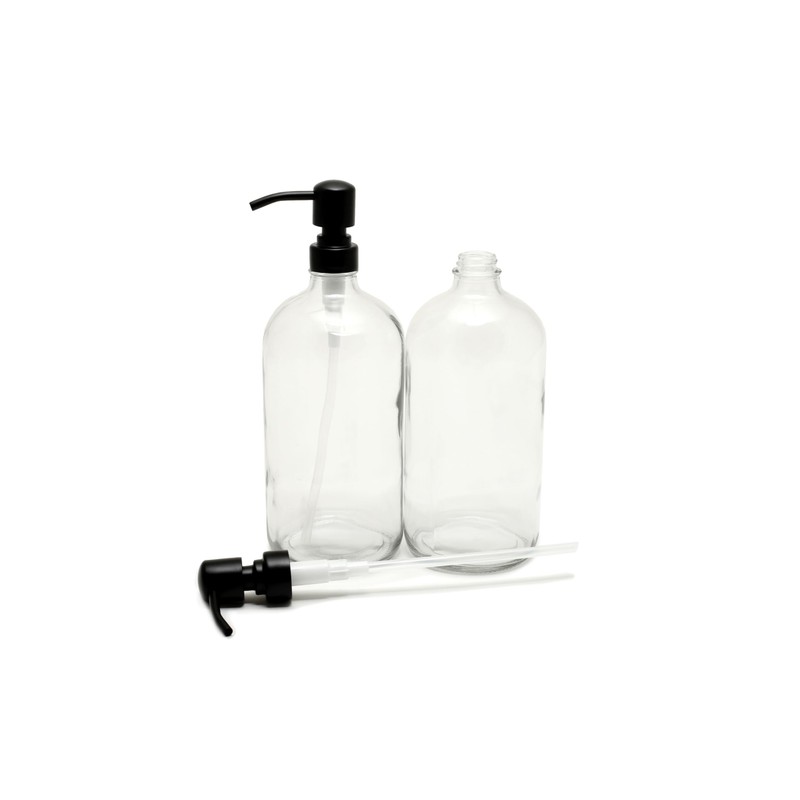 - 2 - 32 oz, Clear glass bottle's, with Stainless Steel, Lotion Pumps.
