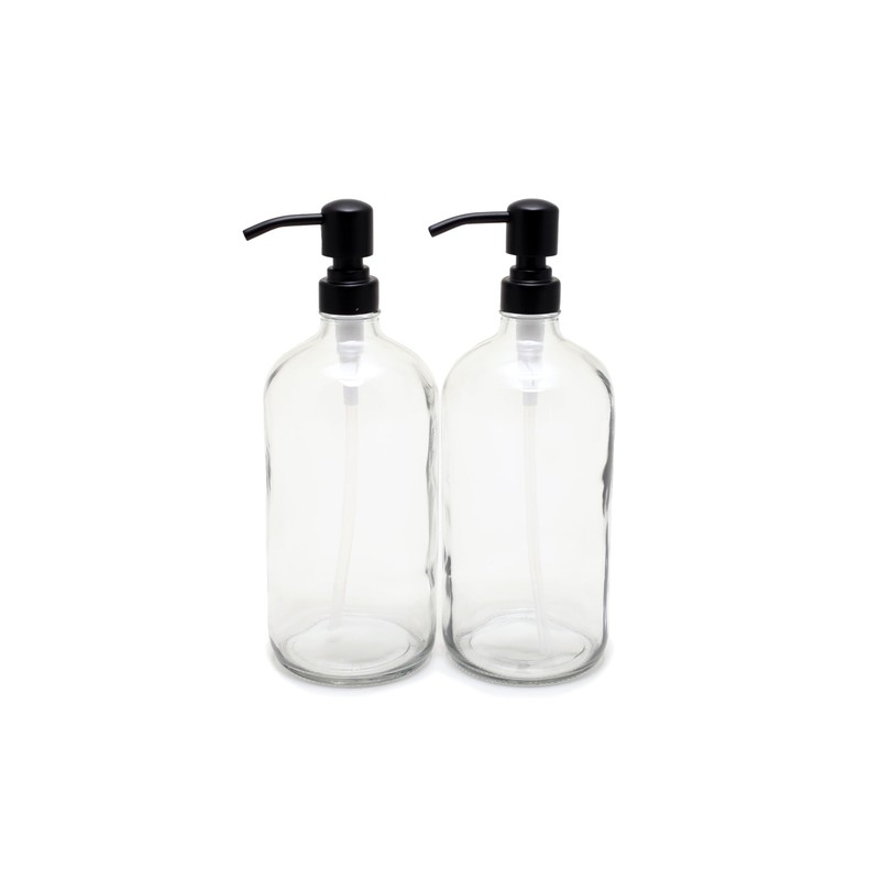 Vivaplex, 2, Large, 32 oz, Empty, Clear Glass Bottles with Stainless Steel, Matte Black, Lotion Pumps