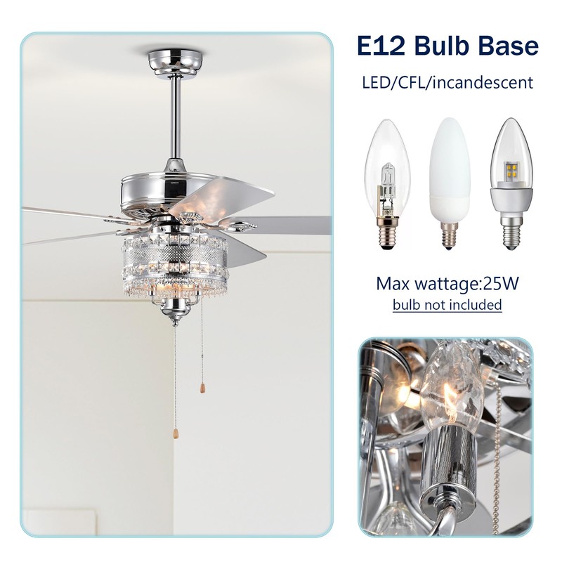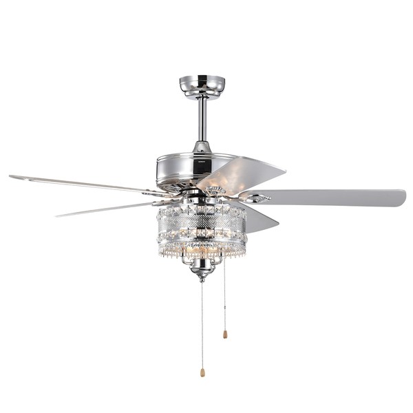 Vivastate Elegant 52'' Crystal Ceiling Fan with 5 Reversible Blades for Ultimate Comfort and Style, Any Room