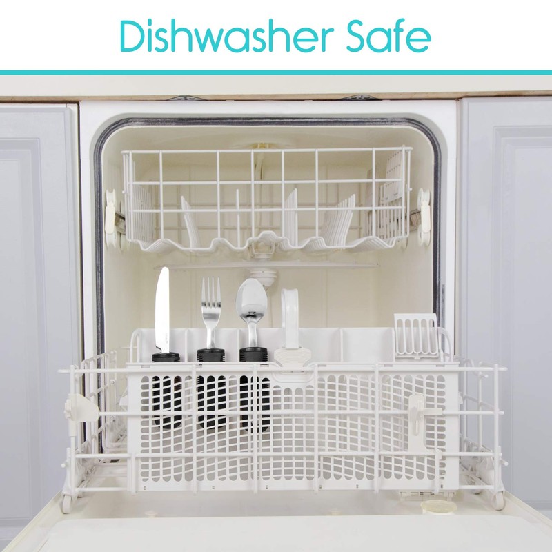 - SET OF THREE DISHWASHER SAFE UTENSILS: This utensil set includes one fork, one spoon and one knife. The adaptive utensils are dishwasher safe for easy, convenient clean up.