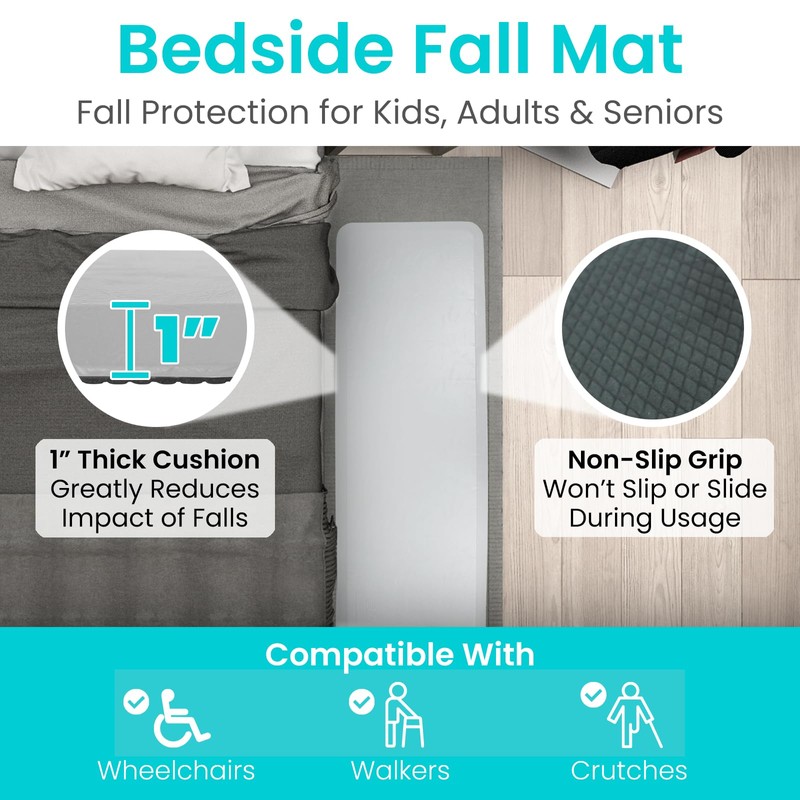 • REDUCES BEDSIDE INJURIES: Providing complete bedside coverage, the mat ensures bedside safety for loved ones or patients at risk of falling. Reduces head injuries and other bodily damage due to falling with the high absorption foam padding.