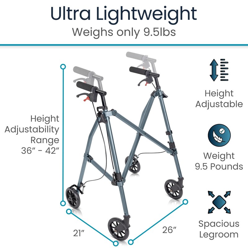 - SAFE, STABLE, & PATENT-PENDING: Built from high-strength aluminum, this lightweight 9.5 lb walker supports up to 300 lbs. Its patent-pending locking system ensures secure folding, while the lifetime frame guarantee provides lasting confidence in its durability.