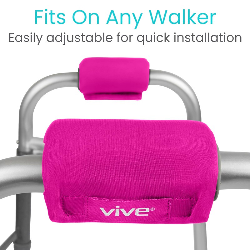 Vive Walker Handle Cushions - Padded Hand Covers - Soft Padding Medical Accessories for Folding Rolling Wheelchair, Rollator Handle, Senior, Elderly Grippers - Foam Crutch Pads Grips - Mobility Aid (Pink)