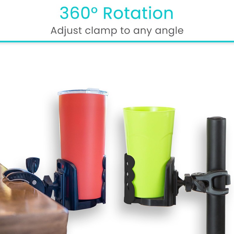 - SECURE CLAMP: Lined with non-slip & textured material, the Vive Cup Holder will remain firmly secure.