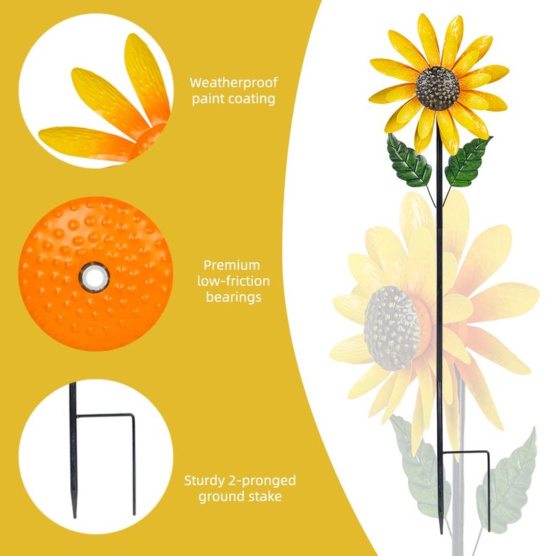 - ✨ [Unique Design] The wind spinners are designed according to the shape of sunflower, with a sturdy metal structure and a double face formed by two sunflowers. The yard spinners spins with the wind, helping to soothe the mood and add vitality to the garden.