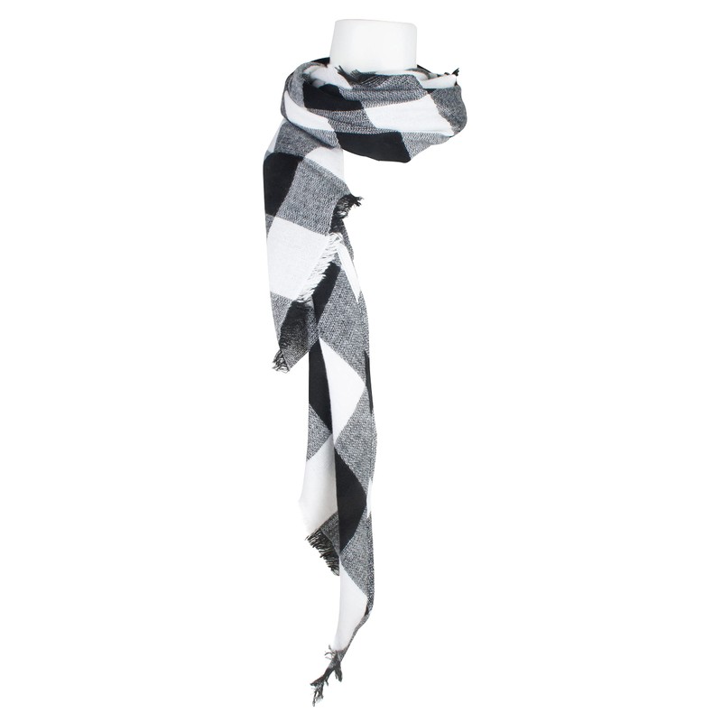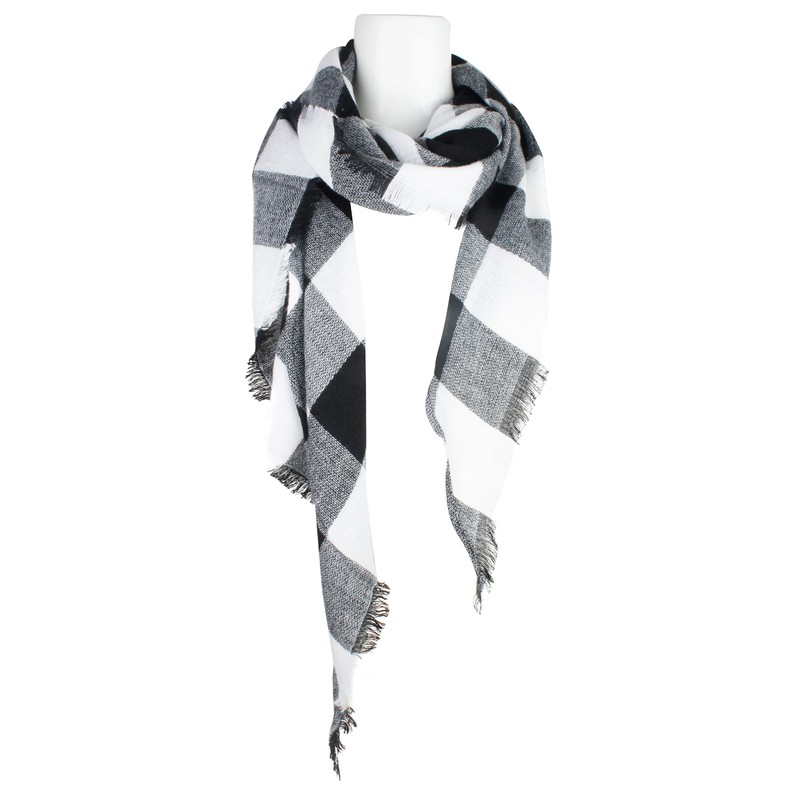 VIVIAN & VINCENT Triangle Fall Winter Soft Plaid Scarfs for Women Scarf Warm Shawls and Wraps Christmas Buffalo Chek Black White
