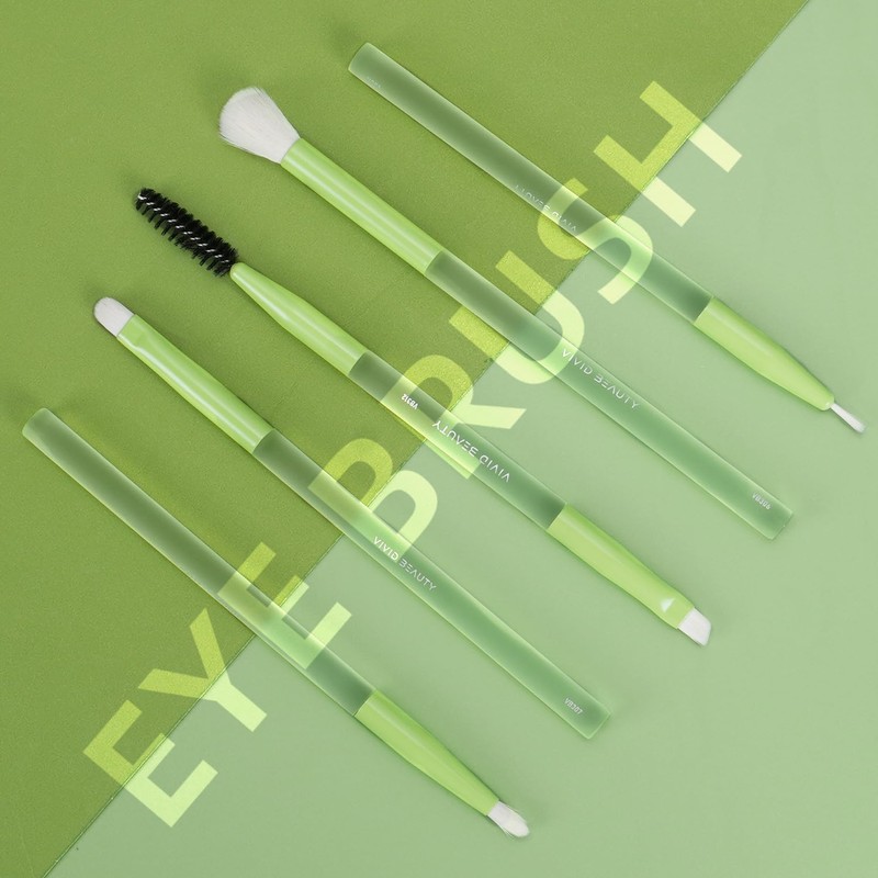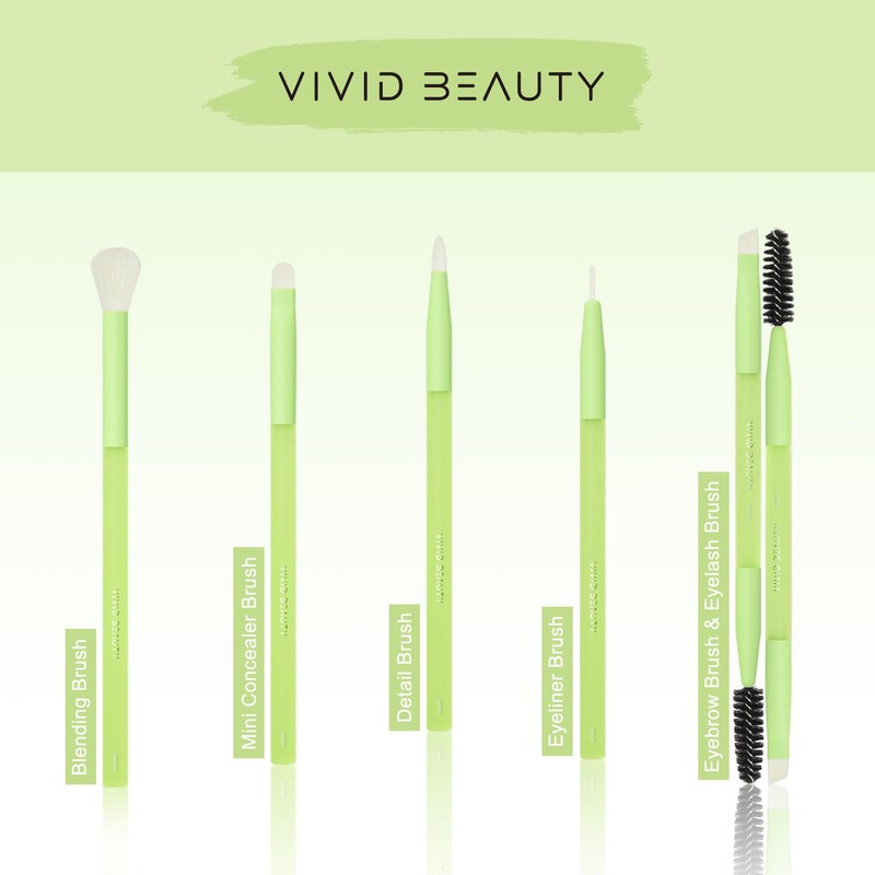 Vivid Beauty 5-Piece Green Eye Makeup Brush Set – Soft, Synthetic Bristles Brushes for Eyeshadow, Blending, Eyeliner and Brow – Rubber Handle for Comfort Grip, Perfect for Beginners and Make up Lovers