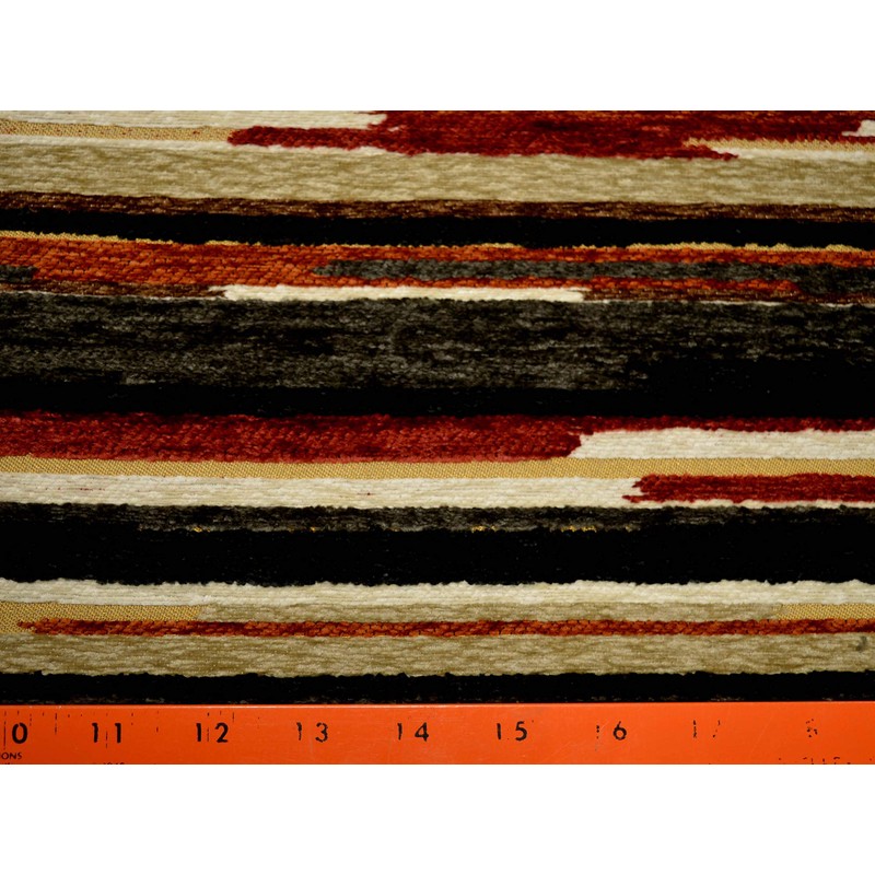Vivid Cayenne Deep Red Heavy Chenille Painted Look Lodge Stripe Upholstery Regal Fabric