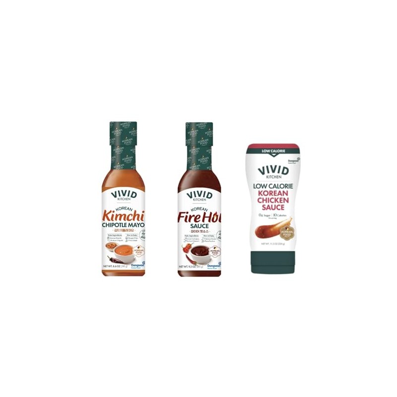 • Variety of Flavors: Includes a fiery hot sauce, creamy Kimchi Chipotle Mayo, and low-calorie Korean Chicken Sauce, offering a range of mild to bold options.