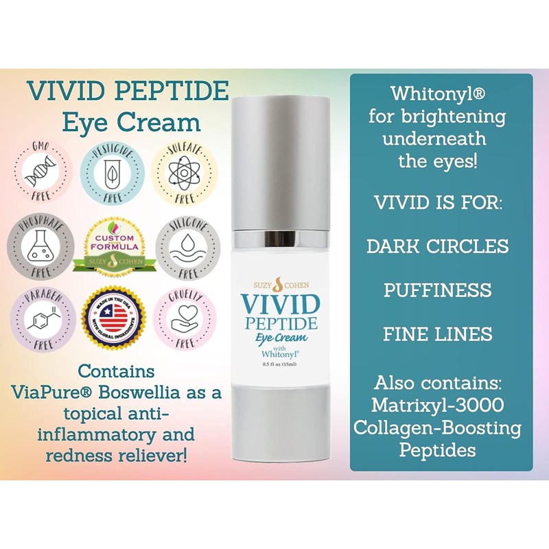 - HYDRATE AND RESTORE - Vivid Peptide Eye Cream with Whitonyl is for fine lines, dark circles and puffiness in the eye area. Find results that are visibly firm, lifted, and sculpted eyelid contours with no irritation or discoloration!