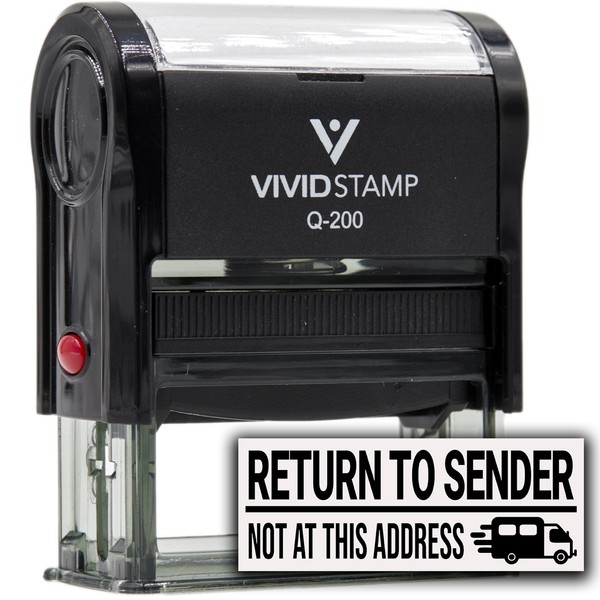 Vivid Stamp Return To Sender Not At This Address (Mail Van) Self Inking Rubber Stamp - Medium 9/16" x 1-1/2", Black