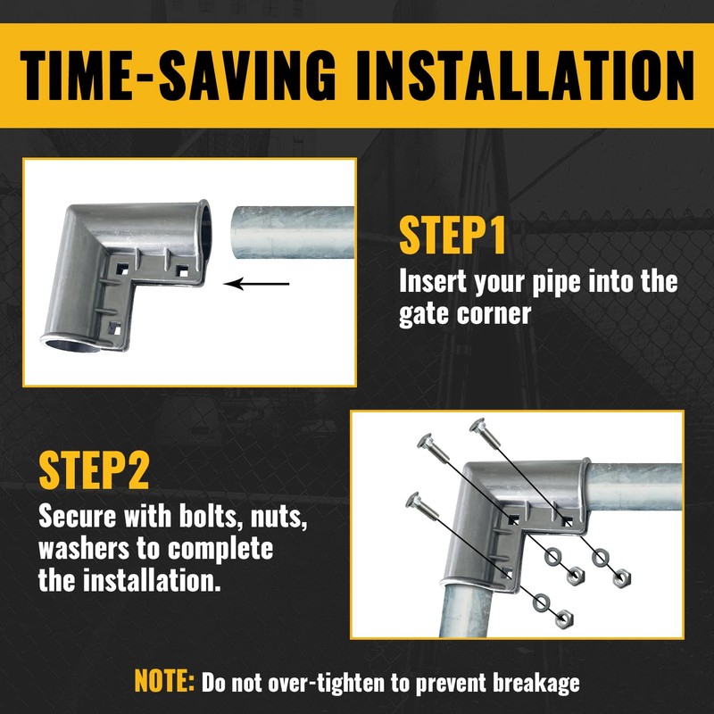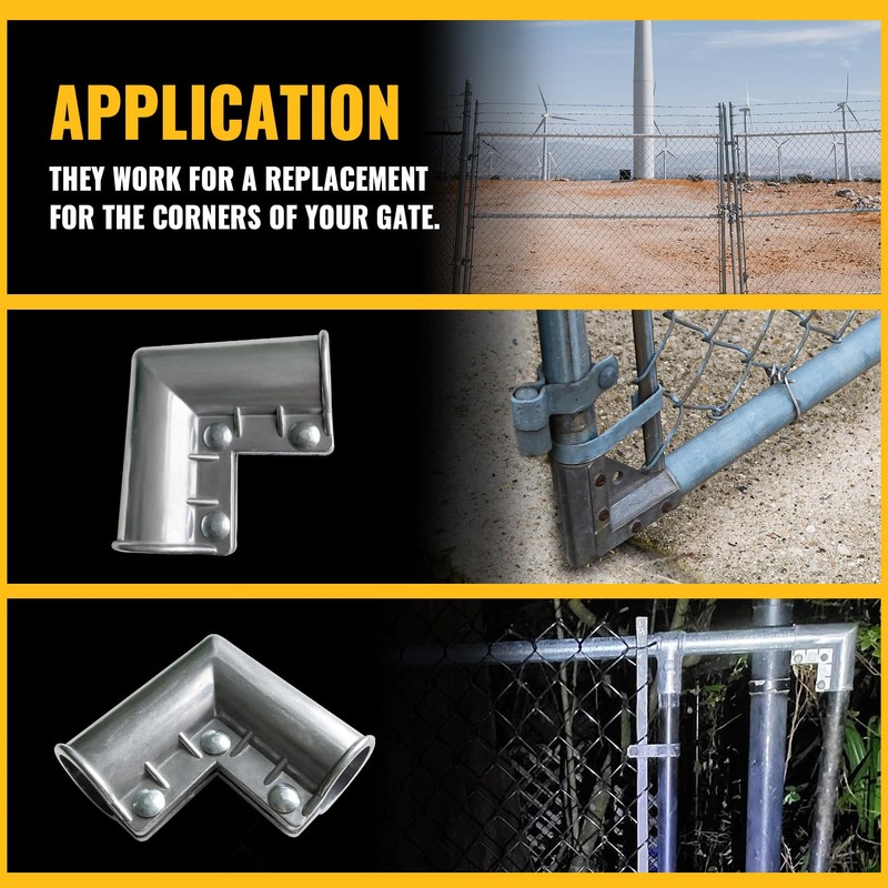 - 【EASY INSTALLATION】Chain link gate elbows complete installation faster and easier, without the need for punching or welding, time saving. NOTE: Don't overtight or chain link gate corner will break off.