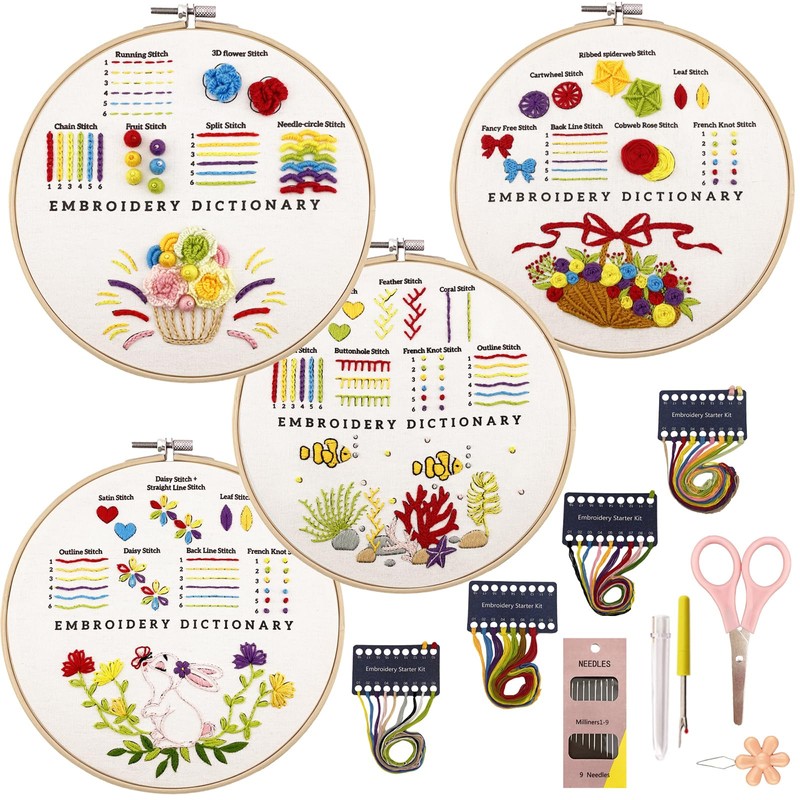 - 🌼All-Inclusive Embroidery Kit: VIVIDOX beginner embroidery kit includes everything to begin your embroidery journey. 9 Embroidery Needles, 4 Pre-printed Pattern, 4 Embroidery Floss, 4 Step-by-step Instructions, 1 Bamboo Hoop, Seam Ripper, Needle Threader, Scissors and a Beautiful Box.