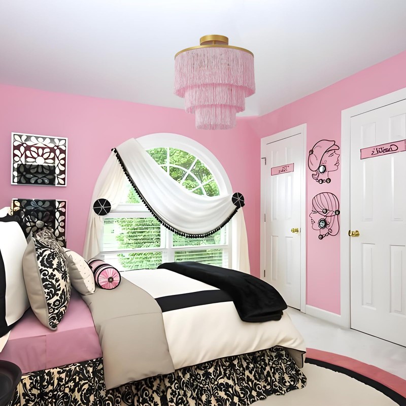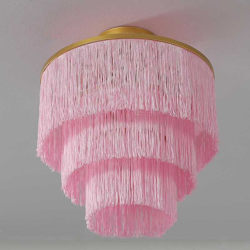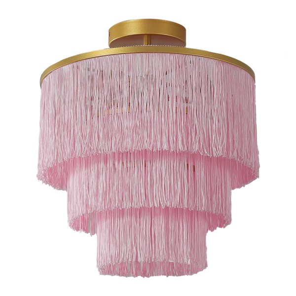 - 【Boho Ceiling Light Fixture】This pink semi-flush ceiling light fixture is a dazzling addition to any space, blending functionality with a touch of bohemian elegance. Crafted from golden metal, this light fixture features 3 layers of fringe that cascade gracefully, adding a playful and free-spirited vibe to your decor.