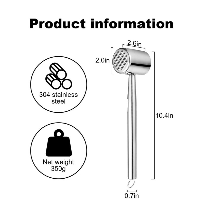 • Quality: the meat tenderiser from VIVIIHOO is 26.5 cm long and made of 304 stainless steel, partially matte, so you can always work professionally in the kitchen.