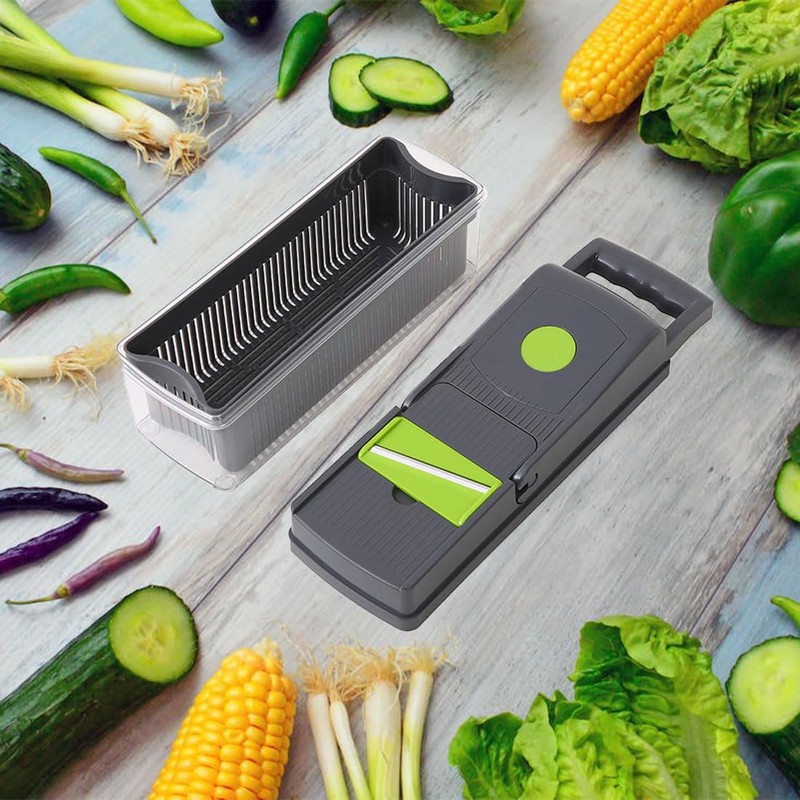 - The VIVIIHOO multifunctional vegetable cutter is a 16 in 1 mandolin vegetable slicer made of stainless steel with grater for vegetables, onion, potato, cucumber and salad choppers. Very powerful - and in black