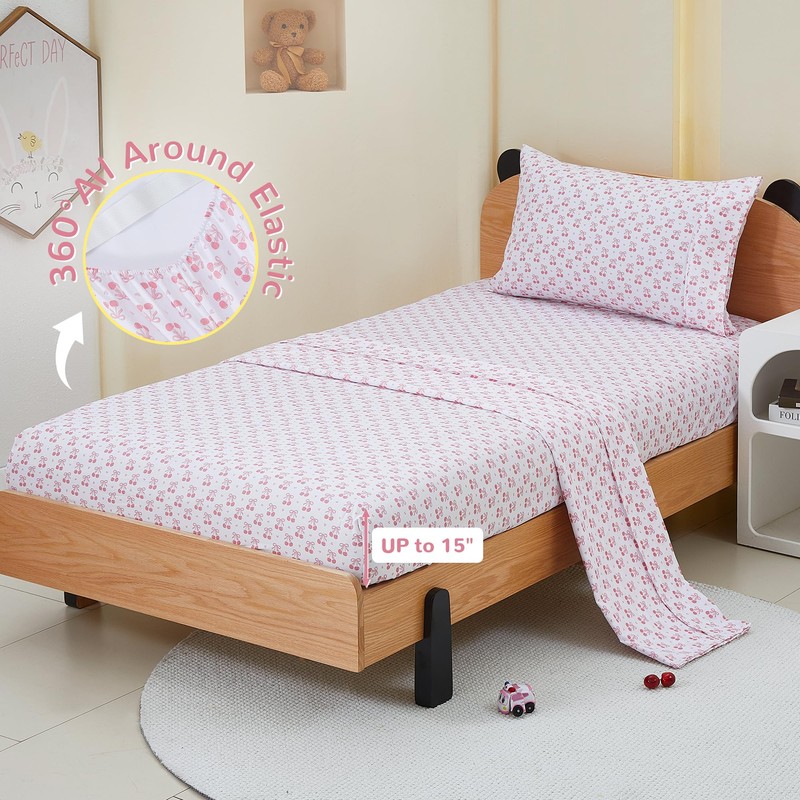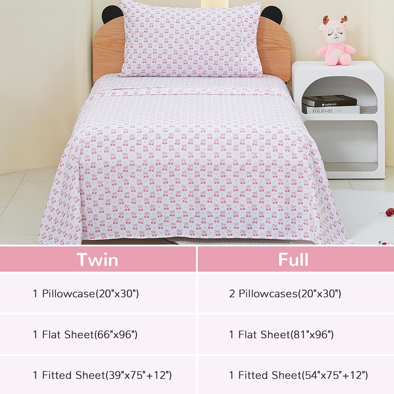 - Twin Size Sheet Set: 3-piece kids twin sheet set includes 1 flat sheet 66"×96", 1 fitted sheet 39"×75" with a 15 inches deep pocket and 1 pillowcase 20"×30". 15 inches deep-pocket fitted sheet with elastic all around - make sure this kids sheet and pillowcase set fits well with kid's twin single bed.