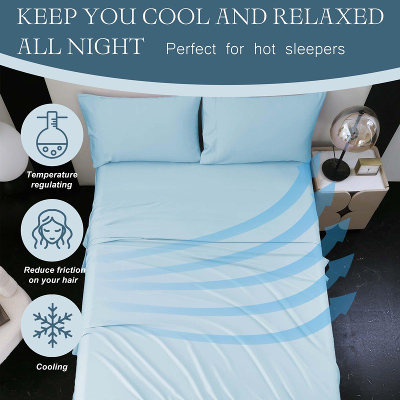 - Cooling: Made from bamboo viscose, Viviland queen sky blue cooling sheet offers unparalleled breathability, and cooling effect - temperature regulating sheets keeps you cool and relaxed all night, perfect for hot sleepers