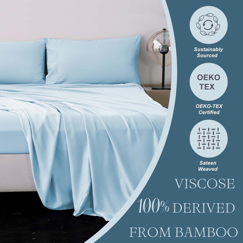 Product: Viviland Cooling Queen Sheets, Bamboo Viscose with Elastic Corner Straps, Sky Blue Cold Siky Sheet & Pillowcase Sets for Hot Sleepers