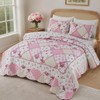 - 【Material】Shell:100% microfiber | Fill:100% microfiber. Using soft light fabric, comfortable and lightweight bedspread set, perfect for all year round. This pink floral patchwork quilt set is reversible, both sides could be used individually. Coverlet set Includes: 1 Bedspread + 2 Pillow Cases.