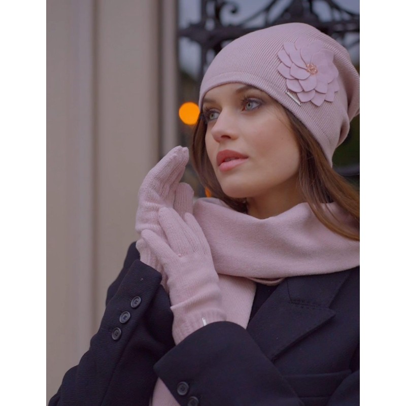 Trendy set for women: winter hat and scarf.
